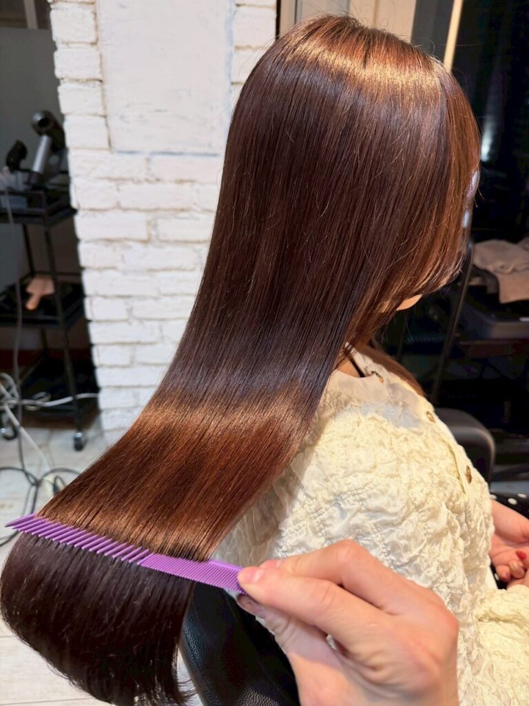 また、酸性髪質改善ストレートにも対応しており、縮毛矯正特有の硬さを感じにくい、シルクのような質感を実現。カラーやパーマを繰り返した毛でも、状態を見極めながら施術してくれる安心感がありますよ。