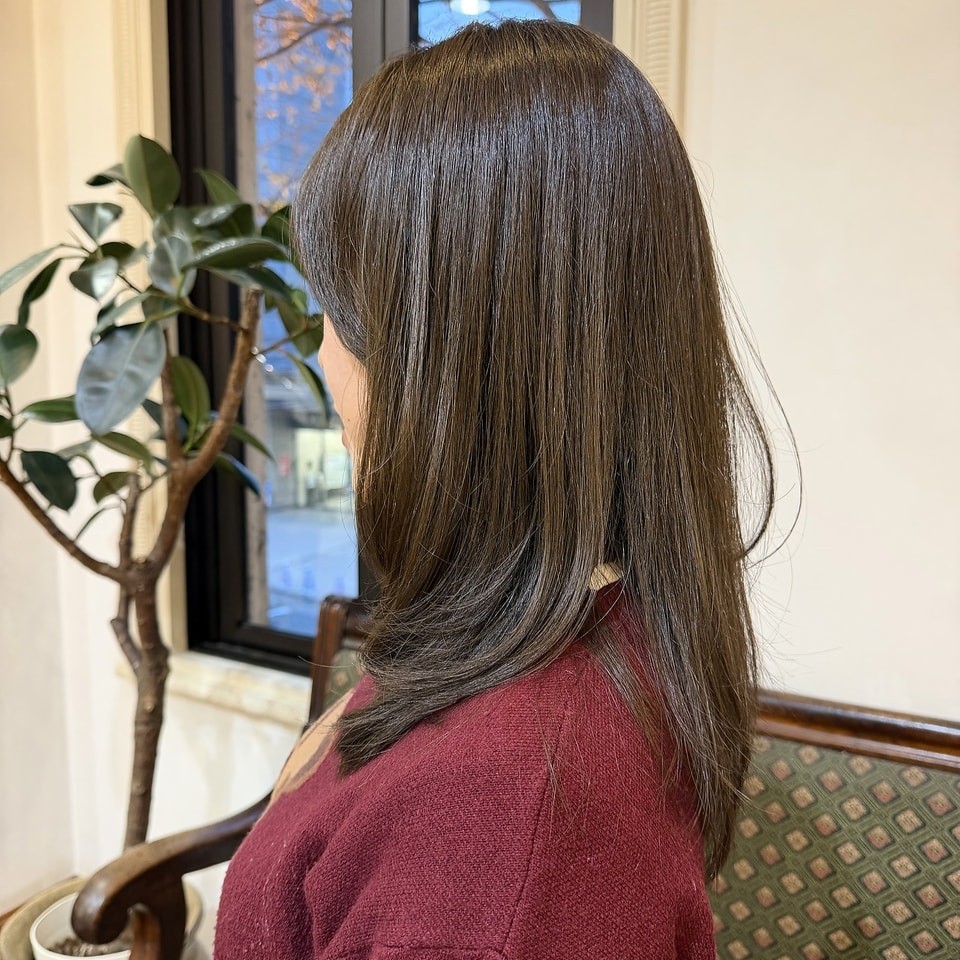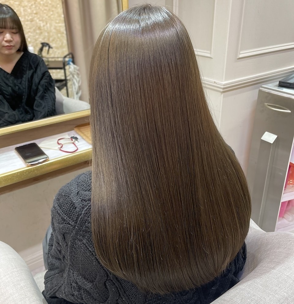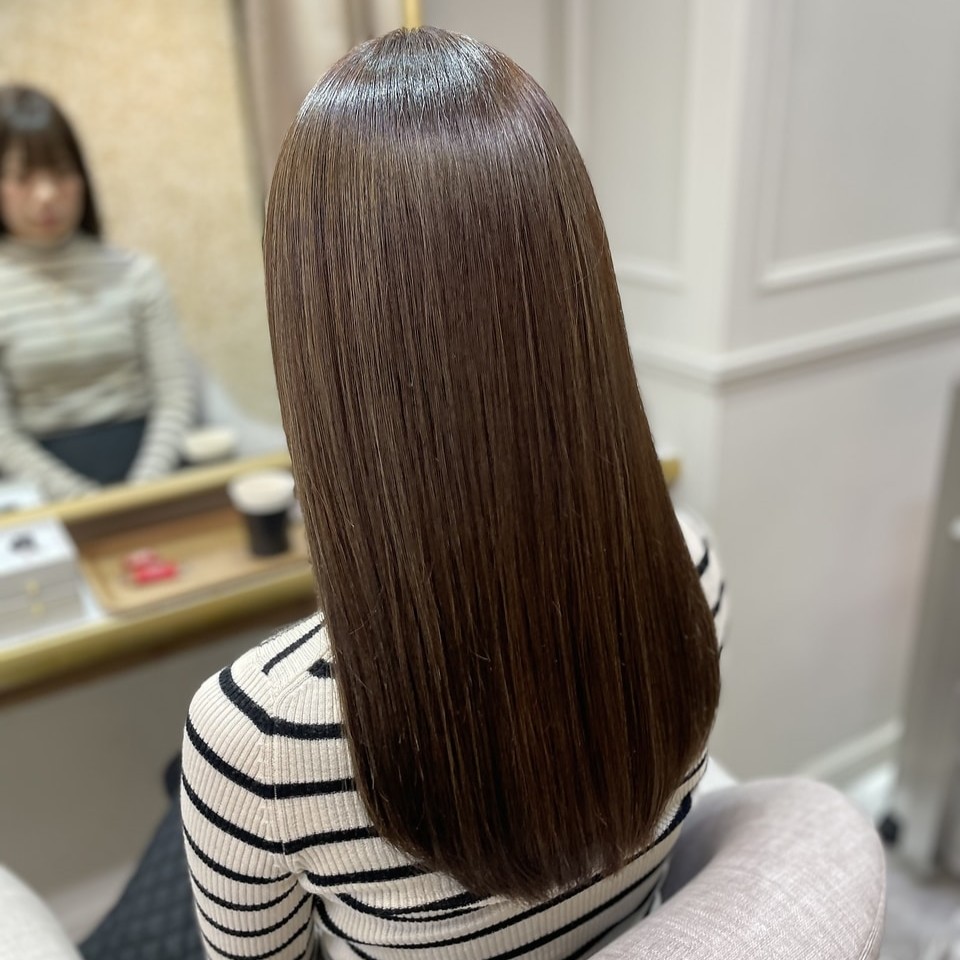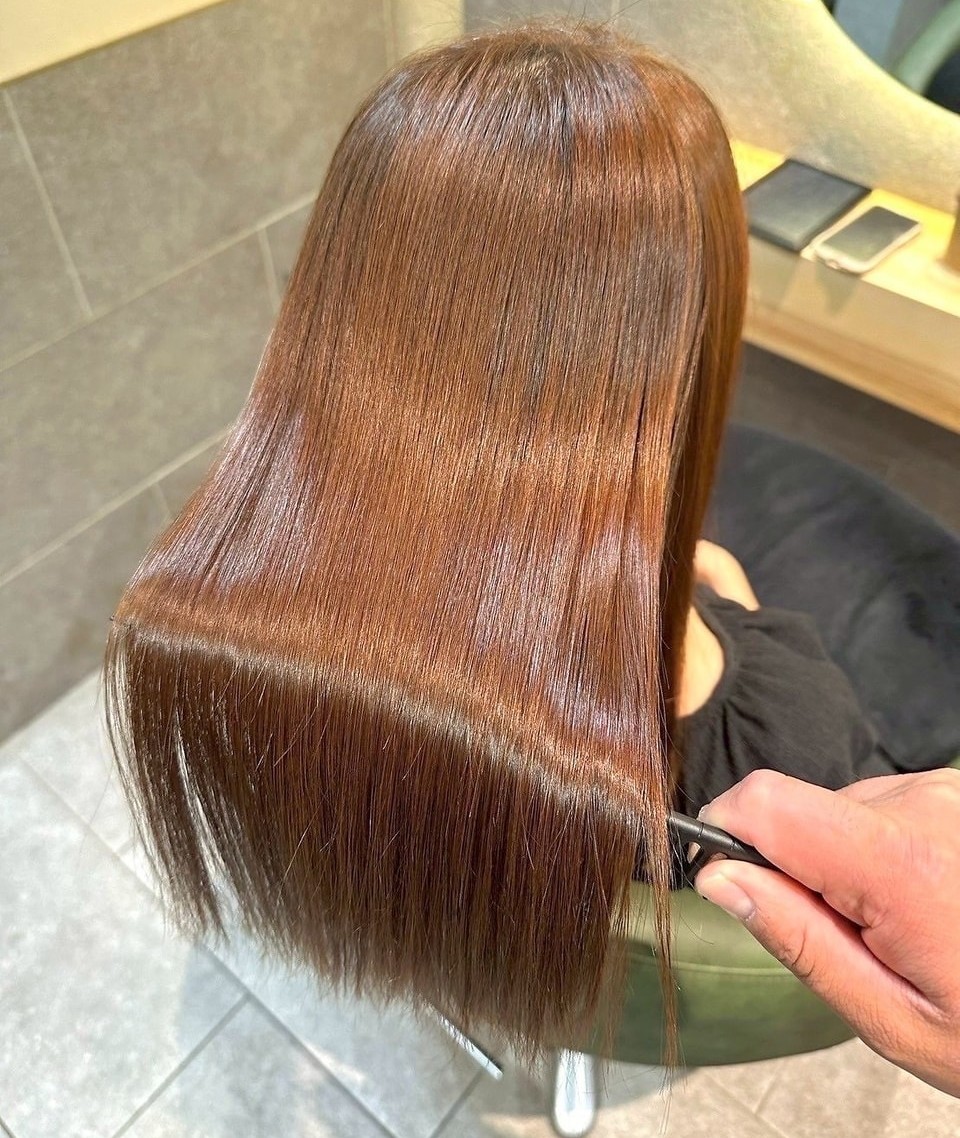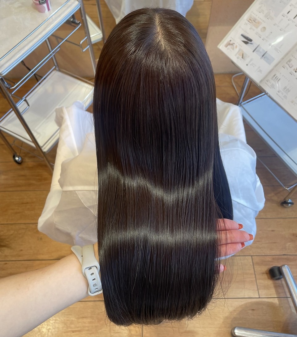 また、酸性髪質改善ストレートにも対応しており、縮毛矯正特有の硬さを感じにくい、シルクのような質感を実現。カラーやパーマを繰り返した毛でも、状態を見極めながら施術してくれる安心感がありますよ。