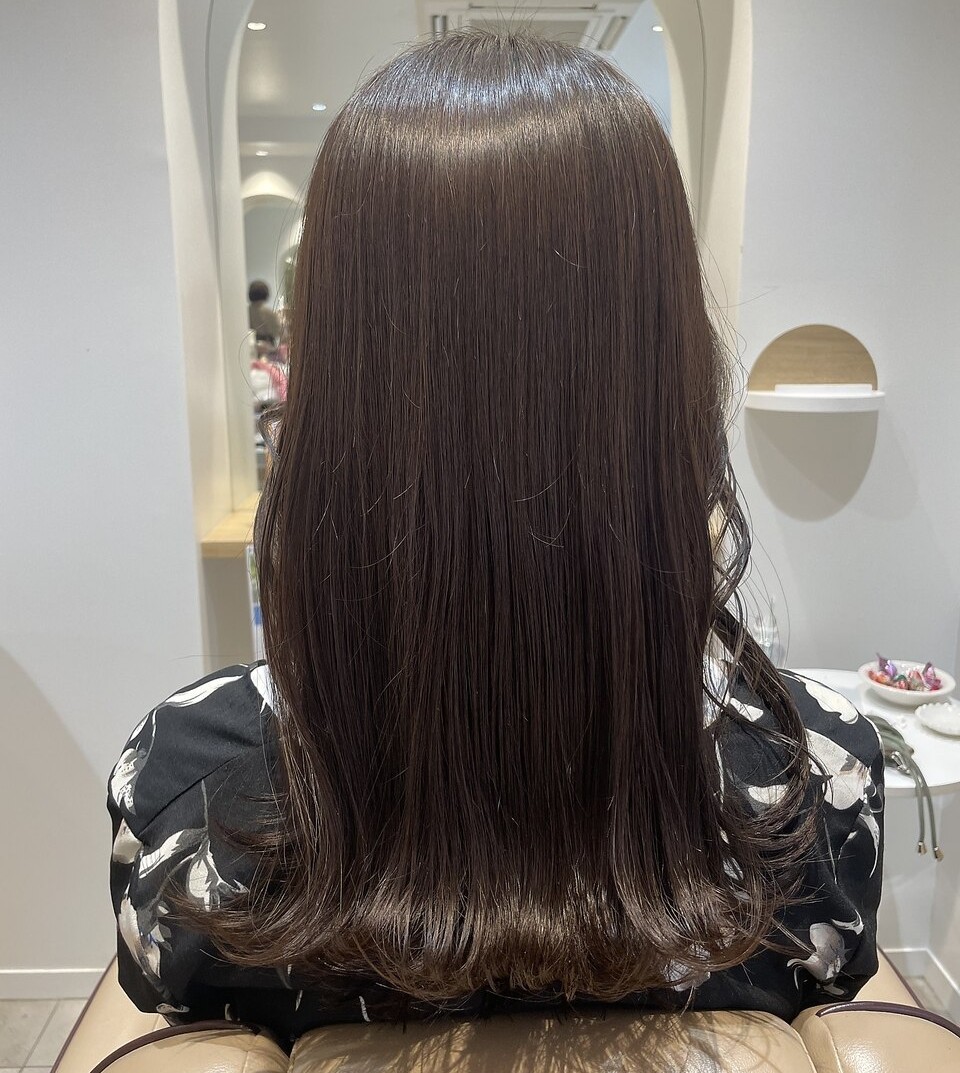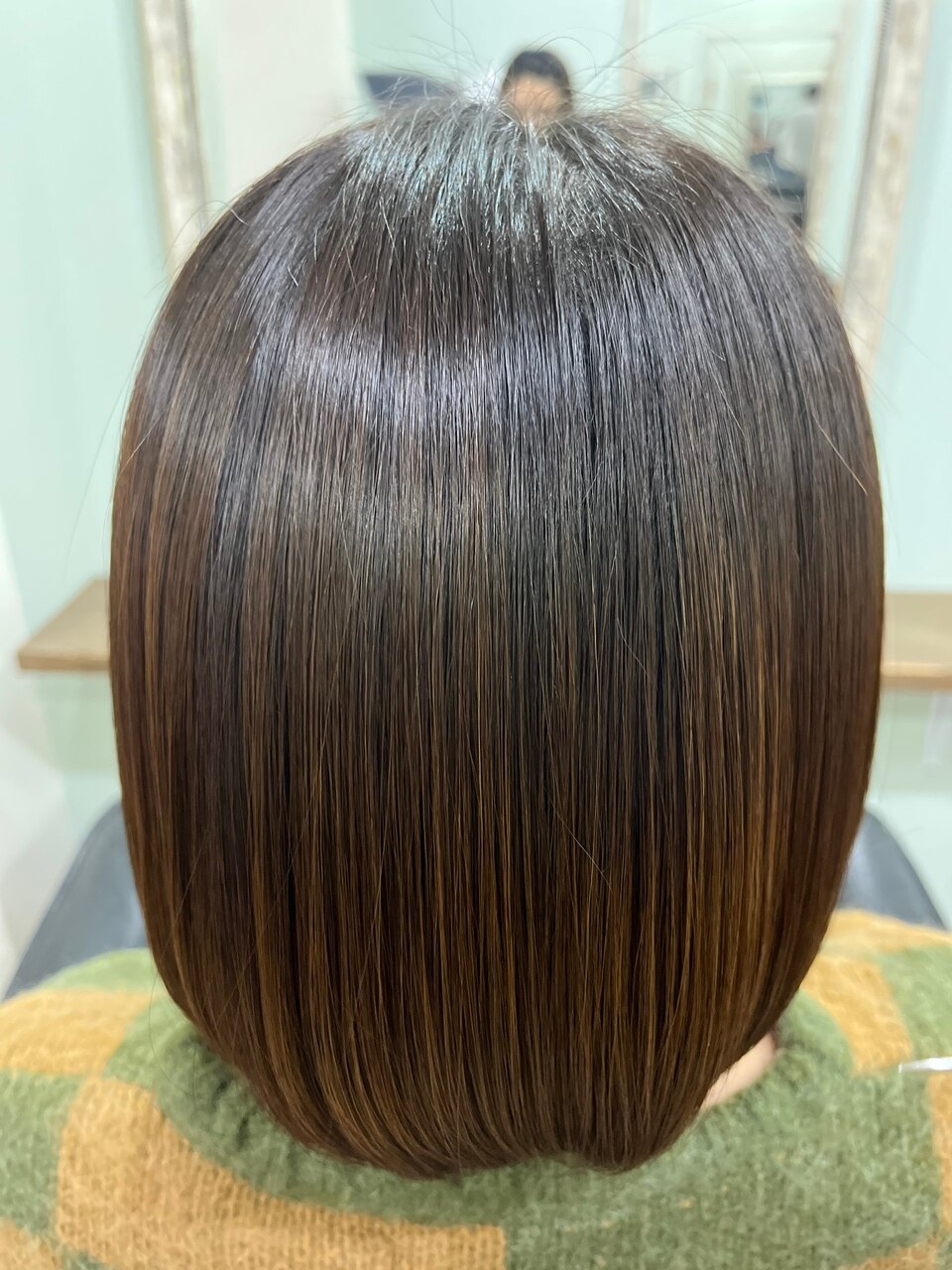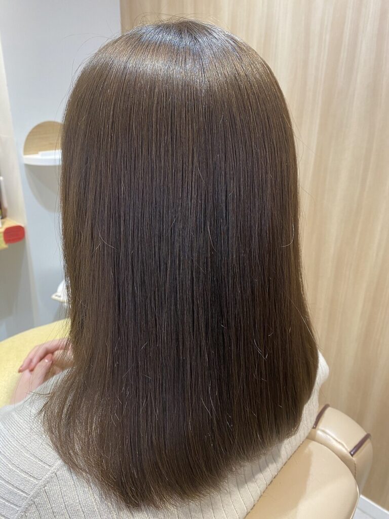 髪の表面を丁寧に整えることで、自然なツヤと指通りの良さがアップ。まとまりやすくなるため、毎朝のスタイリングも短時間で決まります