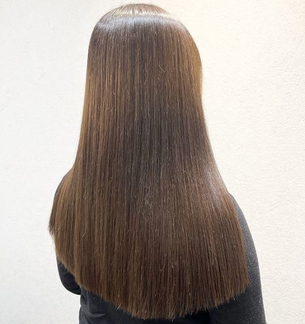 とくにおすすめなのが、「超美髪形成トリートメント」に高濃度水素パウダーを組み合わせた髪質改善メニュー。水素には、エイジングの原因にもなる活性酸素を水分に変える働きがあるといわれており、髪の内側から健やかに導いてくれるんです。髪にしっかり栄養を入れ込んで熱で定着することで、思わず触れたくなるようなつるんとしたツヤ髪に仕上がります。